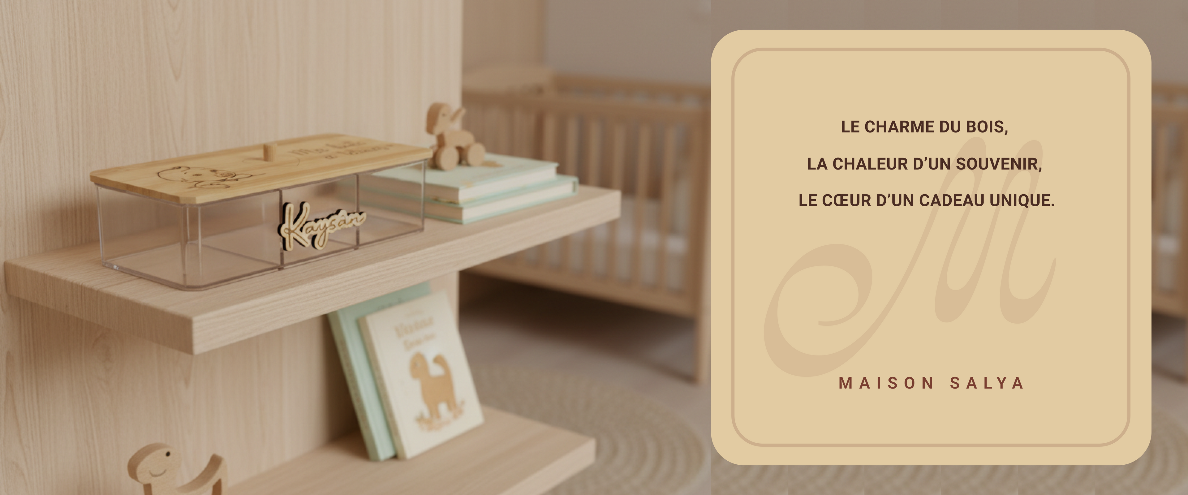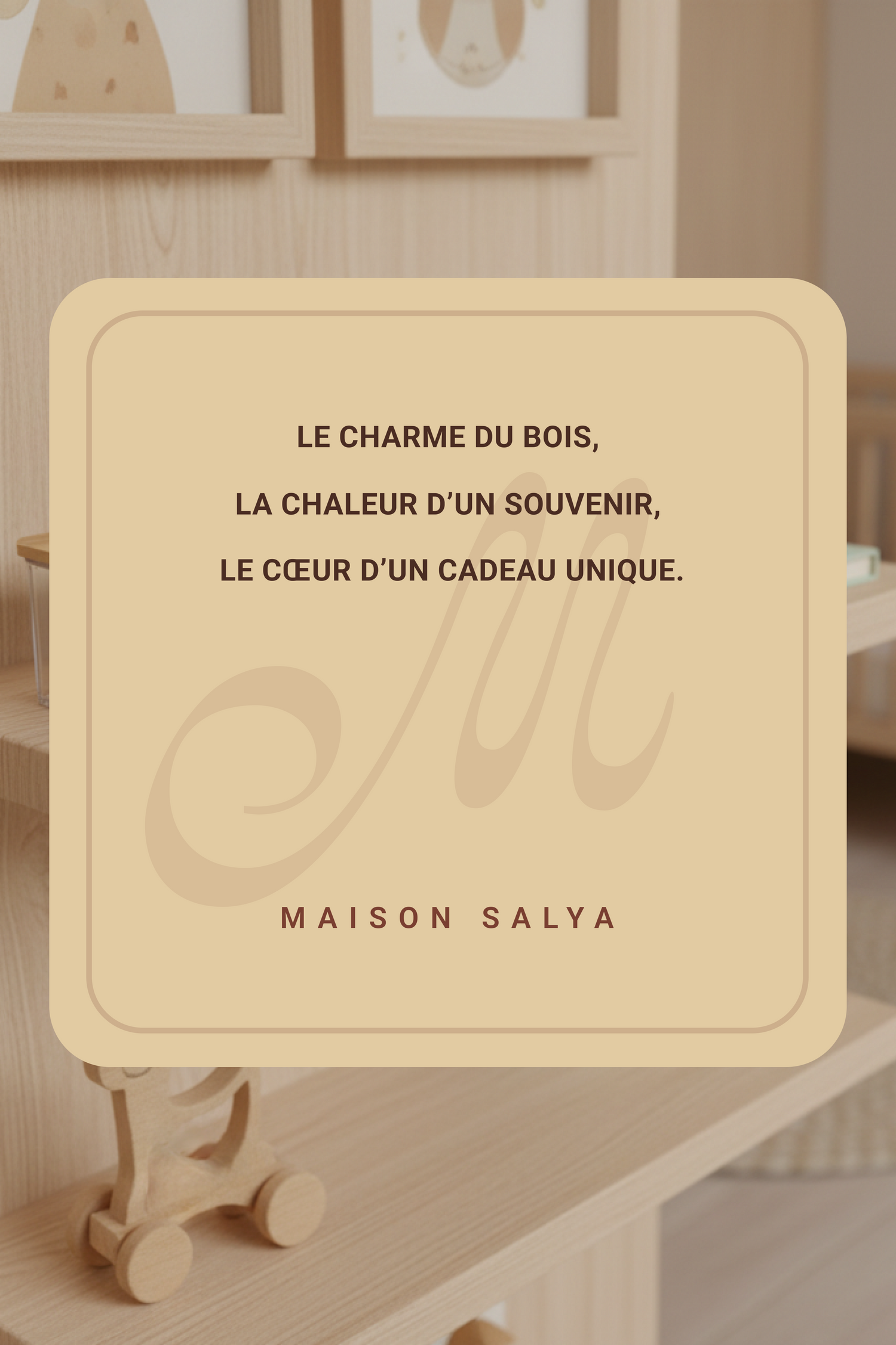 Chez Maison Salya™, chaque création a une âme. Nous ne faisons pas que graver du bois, nous gravons des émotions, des souvenirs et des histoires uniques.