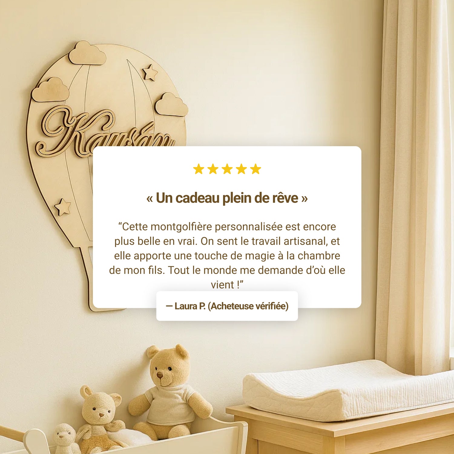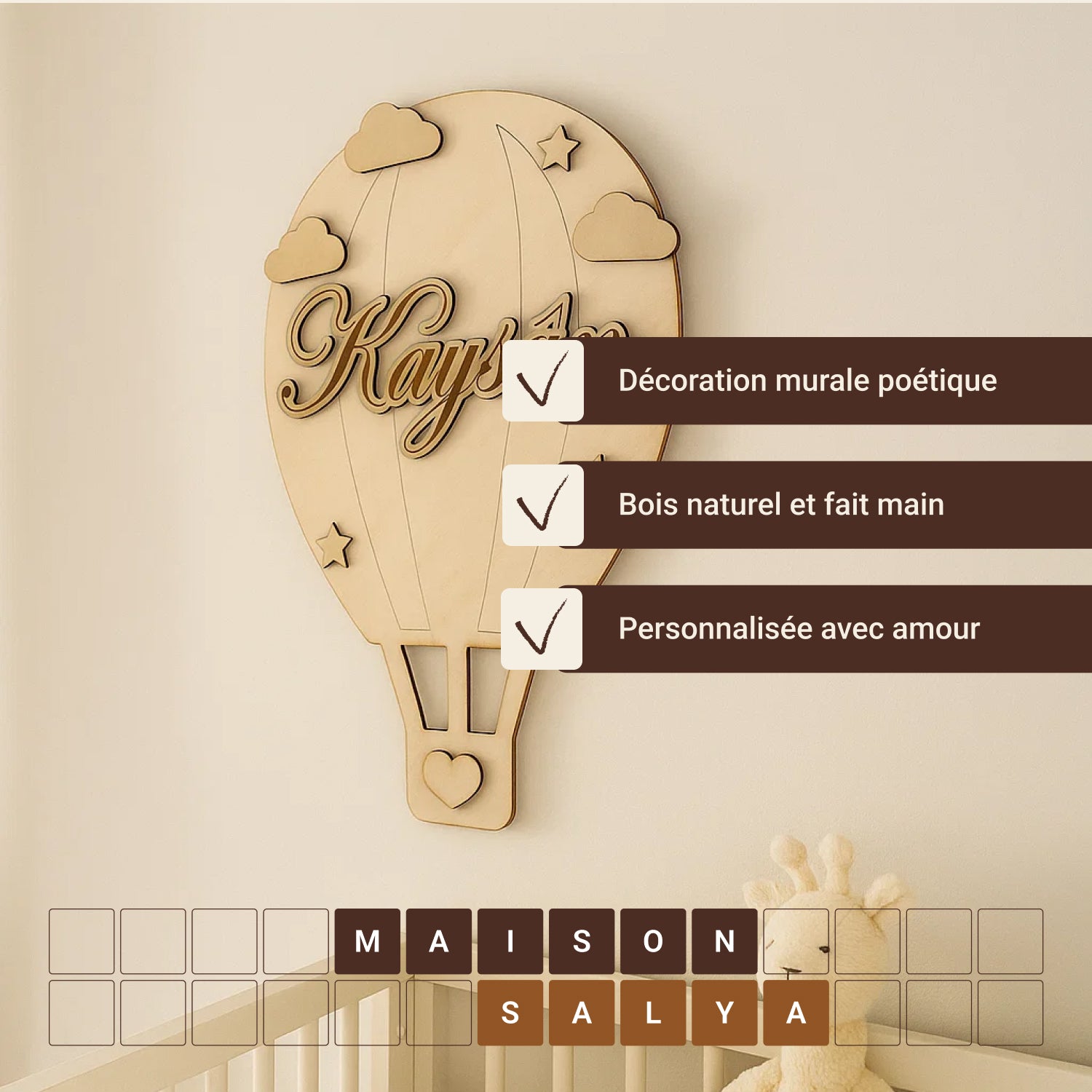 Comme une montgolfière emportant les rêves dans le ciel, cette création en bois naturel illumine la chambre de votre enfant.
