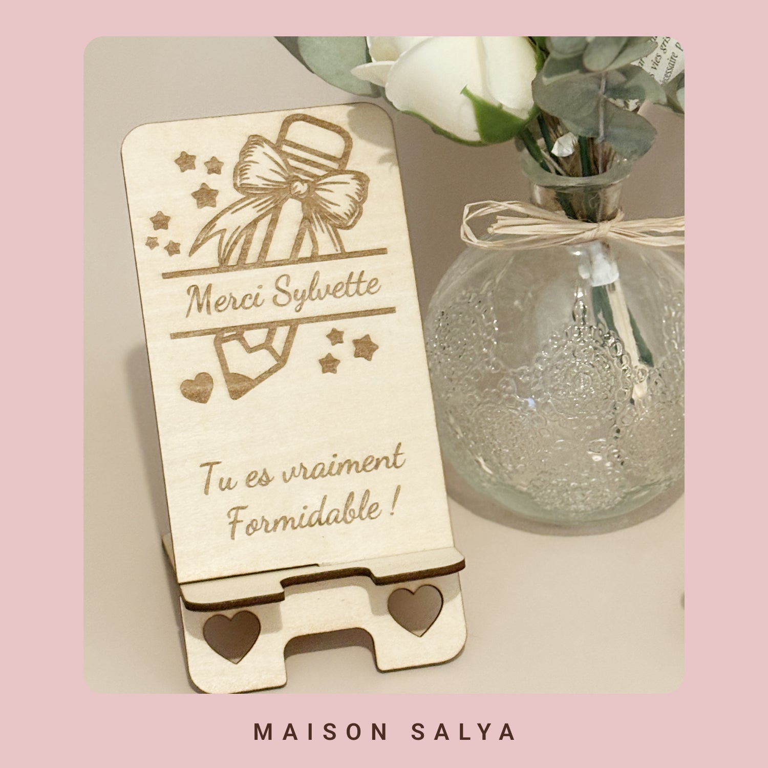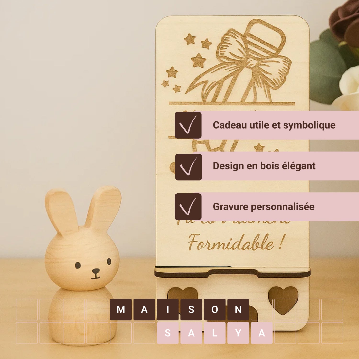 Ce support de téléphone en bois gravé est bien plus qu’un accessoire : c’est un souvenir, une attention pleine de gratitude.