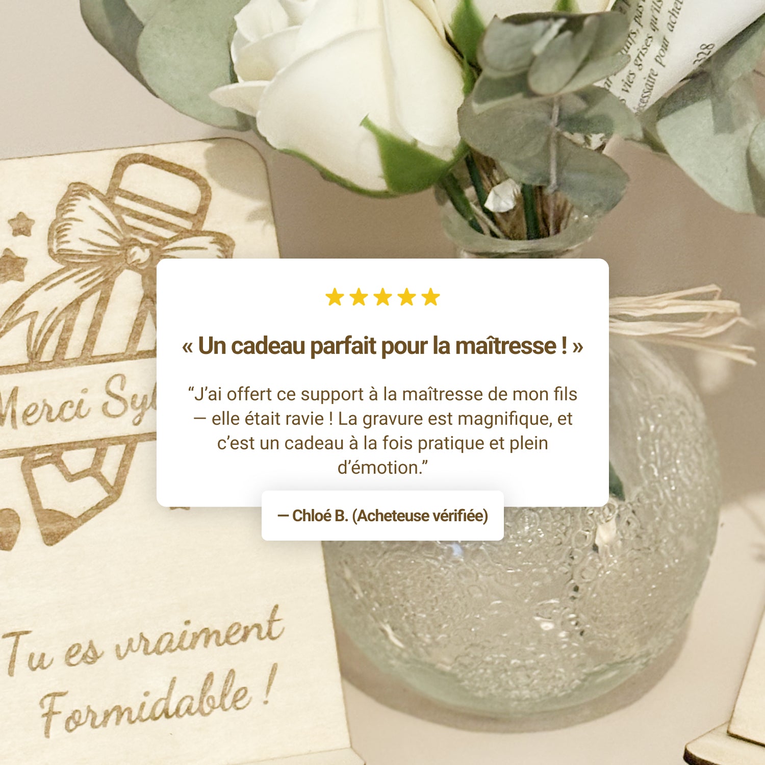 Parfait pour remercier une maîtresse, un coach ou un mentor, il allie utilité, élégance et émotion.